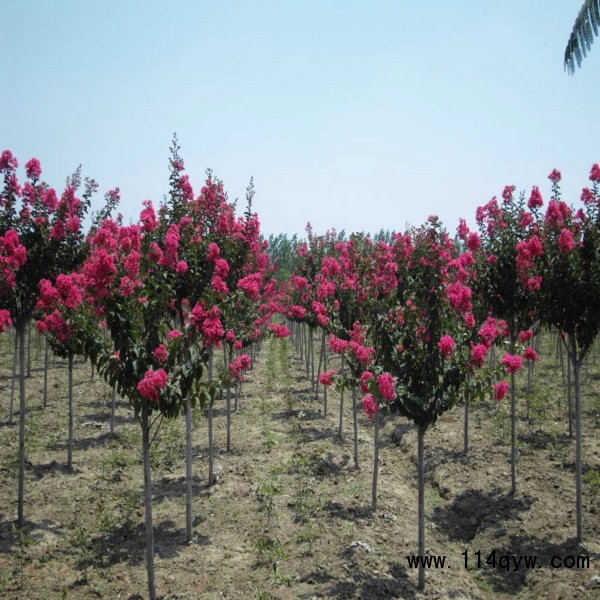 紫薇,別名:癢癢花、癢癢樹、紫金花、紫蘭花、蚊子花、西洋水楊梅、百日紅、無皮樹,拉丁文名:Lagerstroemia indica L. 千屈菜科、紫薇屬落葉灌木或小喬木,高可達7米;樹皮平滑,灰色或灰褐色;枝干多扭曲,小枝纖細,葉互生或有時對生,紙質,橢圓形、闊矩圓形或倒卵形,幼時綠色至黃色,成熟時或干燥時呈紫黑色,室背開裂;種子有翅,長約8毫米。花期6-9月,果期9-12月。紫薇樹姿優美,樹干光滑潔凈,花色艷麗;開花時正當夏秋少花季節,花期長,故有“百日紅”之稱,又有“盛夏綠遮眼,此花紅滿堂”的贊語,是觀花、觀干、觀根的盆景良材;根、皮、葉、花皆可入藥。