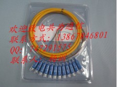 束狀尾纖由符合全色譜規范的康寧緊套光纖,外包芳綸纖維加強元件,再包裹具有一定阻燃性能的聚氯乙烯外護套構成,廣泛應用于傳輸線路與終端設備之間的密集連接。