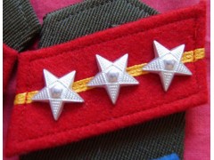 臂章:軍人佩帶在軍衣衣袖上臂部位,表示身份或勤務的標志。一般佩帶在左臂,形狀有長方形、菱形、盾形等,一般為刺繡制品, 套在袖子上的長方形臂章亦稱袖章或袖標。中國人民解放軍在歷史上曾以臂章為標志。臂章通常用黃色或紅色的絲織品制成,標以紅色或黃(白)色的“ 值班員 ”、“值日員”、“值勤”字樣,套在左臂上。