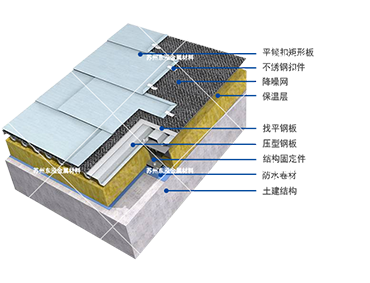 | 平鎖扣式系統(tǒng)作為傳統(tǒng)的金屬屋面系統(tǒng),在現(xiàn)代建筑中仍運用。其主要用于較大坡度屋面及墻面。在鋼架結(jié)構(gòu)、混凝土結(jié)構(gòu)、木制結(jié)構(gòu)中均有很好的運用,錯落有致的板塊分割,極具裝飾效果。 |