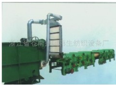 本廠最新研制的再生棉生產(chǎn)線流水線,由2臺自動開花機,1臺自動送花機,2臺清彈機組和成,該生產(chǎn)線需要2-3人,需要動力60-70千瓦,每小時產(chǎn)250斤左右的再生棉,該產(chǎn)品具有設計合理,操作方便,操作工人少,排塵性好,噪聲小,對各種纖維損傷甚微等特點,是加工再生棉最完善生產(chǎn)設備,生產(chǎn)的再生棉可與原棉相媲美,設備采用流水線安裝,要求車間長度20米、高度不低與4米、寬度不小于2米;將開花機與清彈機并排安裝時,要求車間長度12米、高度不低與4米、寬度不小于4米。 |